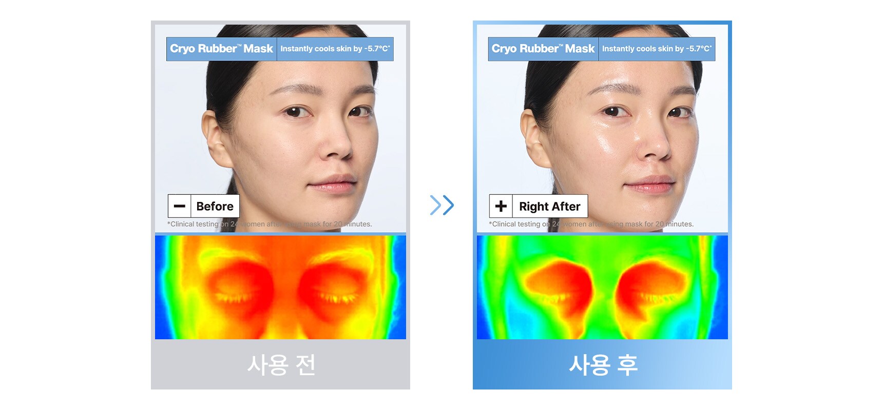크라이오 쿨링 기술력으로 사용 즉시 피부 온도를 낮춰 시원하게 진정시켜 줍니다.
