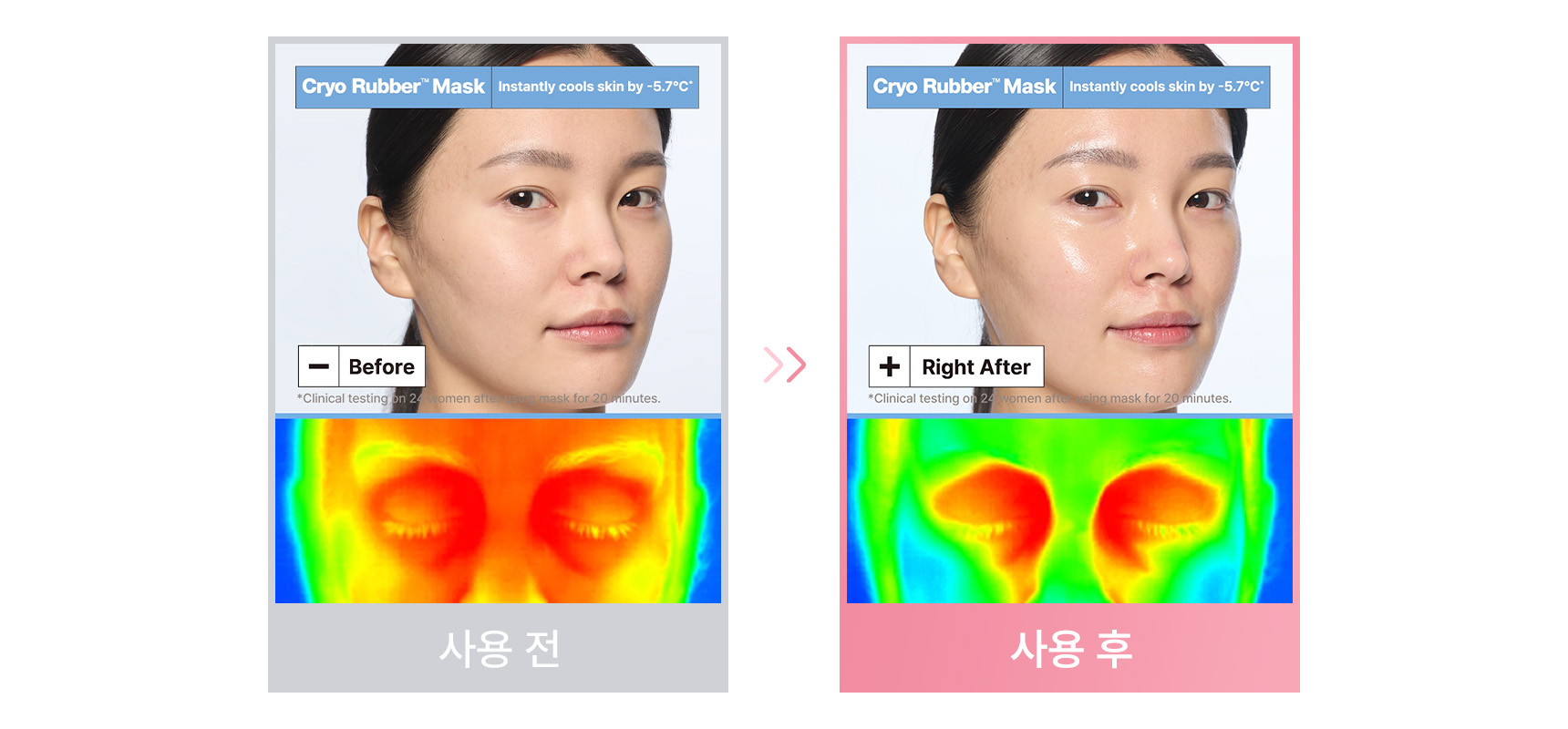 크라이오 쿨링 기술력으로 사용 즉시 피부 온도를 낮춰 시원하게 진정시켜 줍니다.
