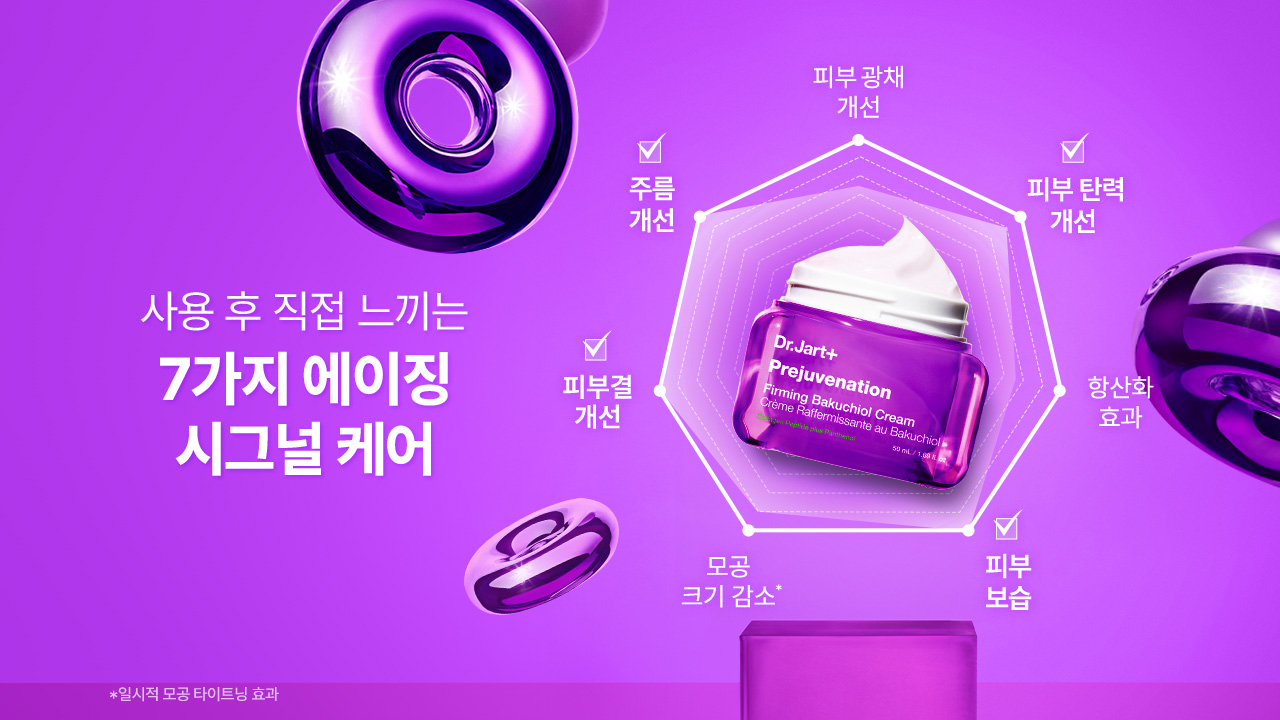 바쿠치올과 콜라겐 펩타이드 성분이 결합되어 늘어지고 칙칙해진 피부를 탄탄하고 어려 보이는 건강한 피부로 가꿔줍니다.