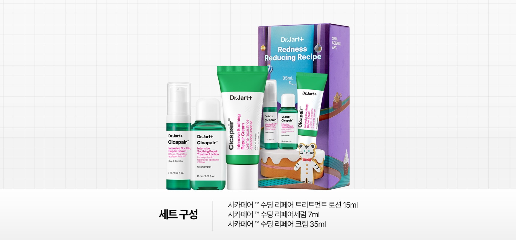 민감 피부를 위한 시카 성분이 자극받고 민감해진 피부를 진정시켜 보습 장벽을 유지해주는 시카페어세트닥터자르트 레드니스 리듀싱 레시피